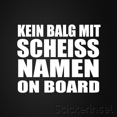 Der Autoaufkleber – Kein Balg mit scheiss Namen on Board ist sowohl für den Innen als auch für den Außenbereich geeignet.